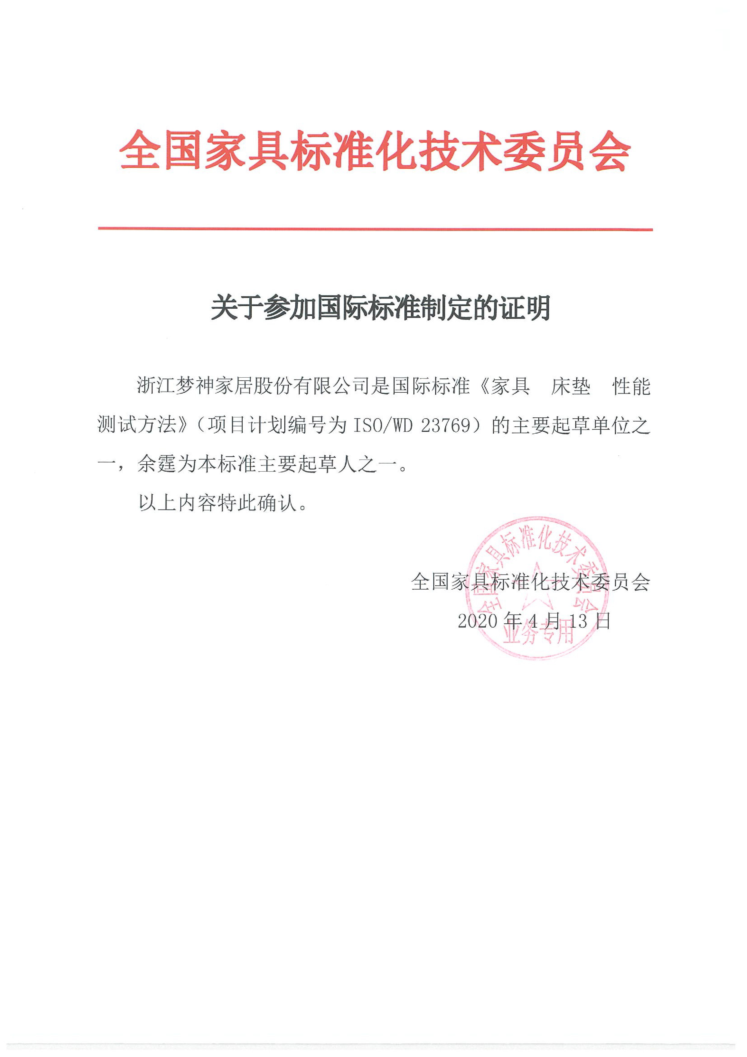 《家具 床墊 性能測試方式》主要起草單位